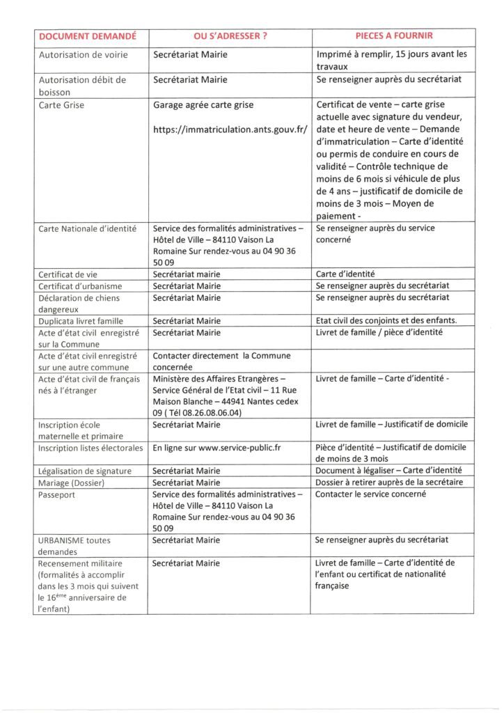 DEMARCHES ADMINISTRATIVES