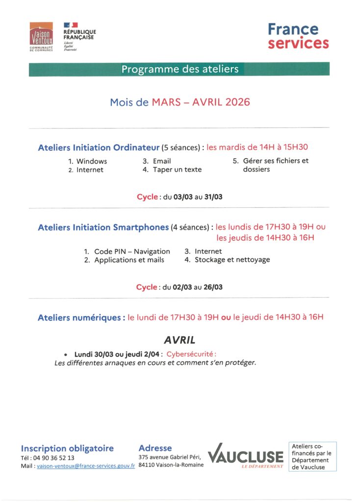 LES ATELIERS FRANCES SERVICES JANVIER FEVRIER